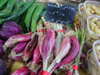 St. Didier lacks the food sculpture, but it does have the real thing — lush vineyards and fruit trees (from my window I see figs, apricots, cherries, and quince). It’s so easy here where the sun and the soil produce a kaleidoscope of colorful summer produce that flirts and winks at you from the market stands, begging to be taken home and given a good time. Provencal markets, with their fruits, vegetables, cheeses, fish, meats, and flowers are riots of color and noise and the enticing smells of roasting chickens, exotic spice, and pungent olives.