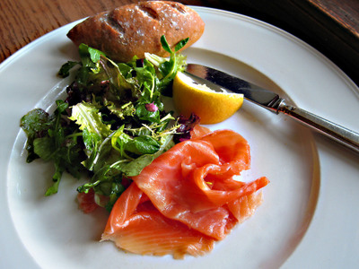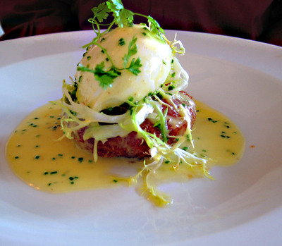 For lunch the next day we had some outstanding roasted cauliflower soup, a delicious fishcake (salmon and cod, with chopped gherkins and some other good stuff, topped with a poached egg), and some excellent sticky toffee pudding at The Chasers, a tiny furbished up pub in Stokeinteignhead, run by the former chef of the Orestone. Then I threw out my back, possibly from the effort of hauling all the excess food weight around, and had to cancel our booking at the Elephant. Tell me life has no sense of humor.