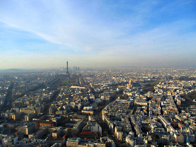 After lunch J and I decided to be total tourists and we walked around the Jardin de Luxembourg again, and then hiked over to Montparnasse and  took the elevator up 56 floors in the Tour. After being a big grouch about it (heights are not, repeat, not my thing) I have to say it was fabulous. You could see all of Paris, and  there were all kinds of aids (maps, photos with labels, etc.) to help you identify what you were seeing. What absolute fun.