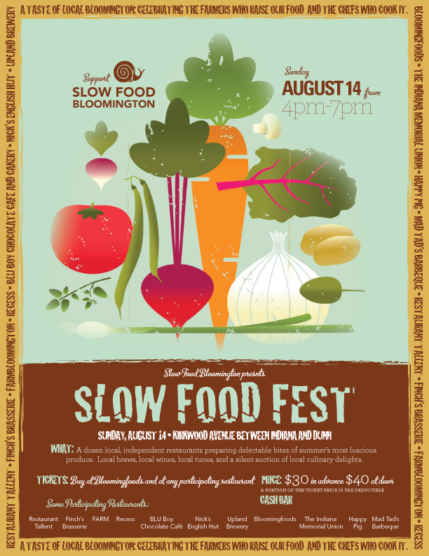 Slow Food Fest — August 14th, 4-7 p.m., Kirkwood Avenue between Indiana and Dunn.