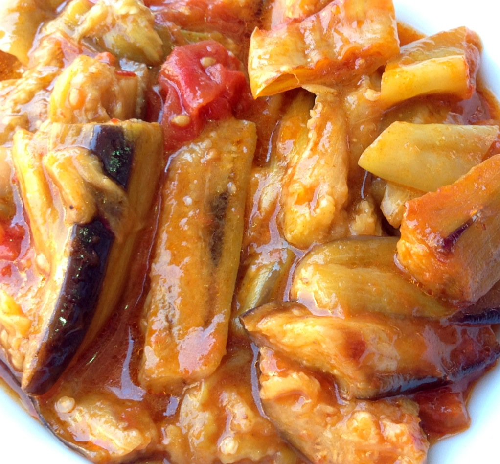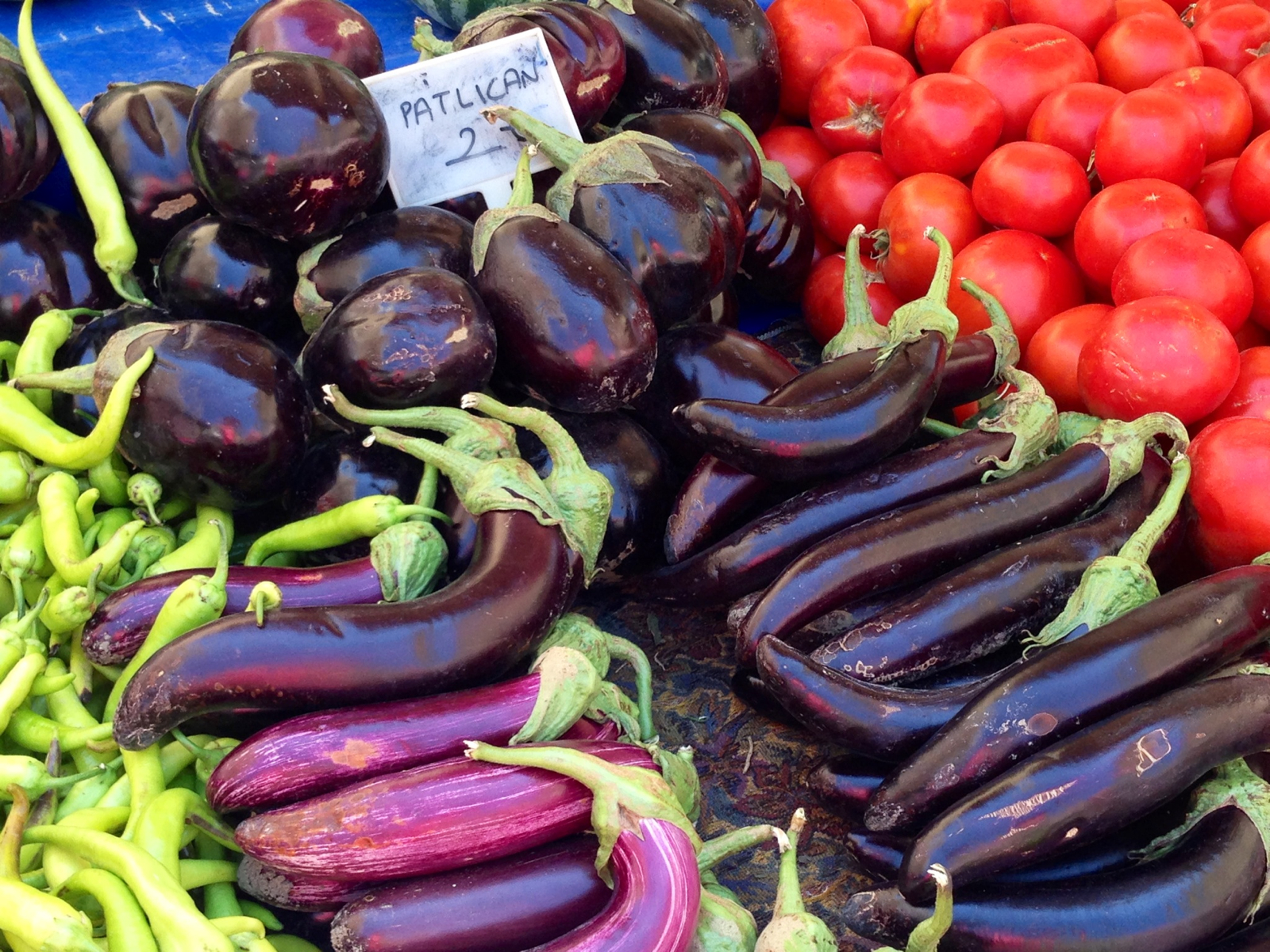 For lunch we stopped at a teensy restaurant with a couple of tables on the sidewalk and exactly zero English in the menu or on the tongue of the owner. Zip. We pantomimed our way into a plate of gyros meat on buttery, chewy pide (flatbread) for Jer, with the best tomatoes I have eaten in years, and a side of vegetable stew that was lovely, but meaty. I had a bowl of eggplant braised in tomato sauce and about a pint of really nice olive oil, with rice. There was a crock of urfa-like pepper on the table, smokey, hot and fruity at the same time that gave just the right kick. It was great. Really, seriously great.