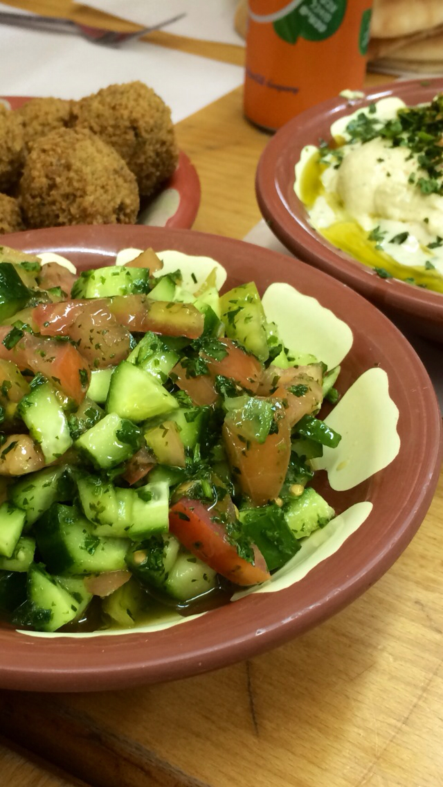 There were some culinary high points, though. Freshly squeezed pomegranate and orange juice, tart and refreshing. Brilliant orange kanefeh, a fabulous dessert of syrup-soaked semolina pastry over melted goat cheese with pistachio sprinkles. Maybe the best falafel I have ever had and phenomenal hummus at the tiniest ever hole-in-the-wall restaurant.
