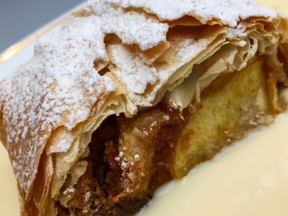 We toured around in the morning (the Amawaterways European tour guides to date are nowhere near the class of the Vietnamese and Cambodians we met this summer, by the way.) Then we visited some Christmas markets but it was cold (did I mention that?) so we went for a coffee and a strudel. The real thing, and boy was it good. I’ve seen pictures of how they make that flaky pastry but this was light and crisp and filled with apple and spice and swimming in custard.