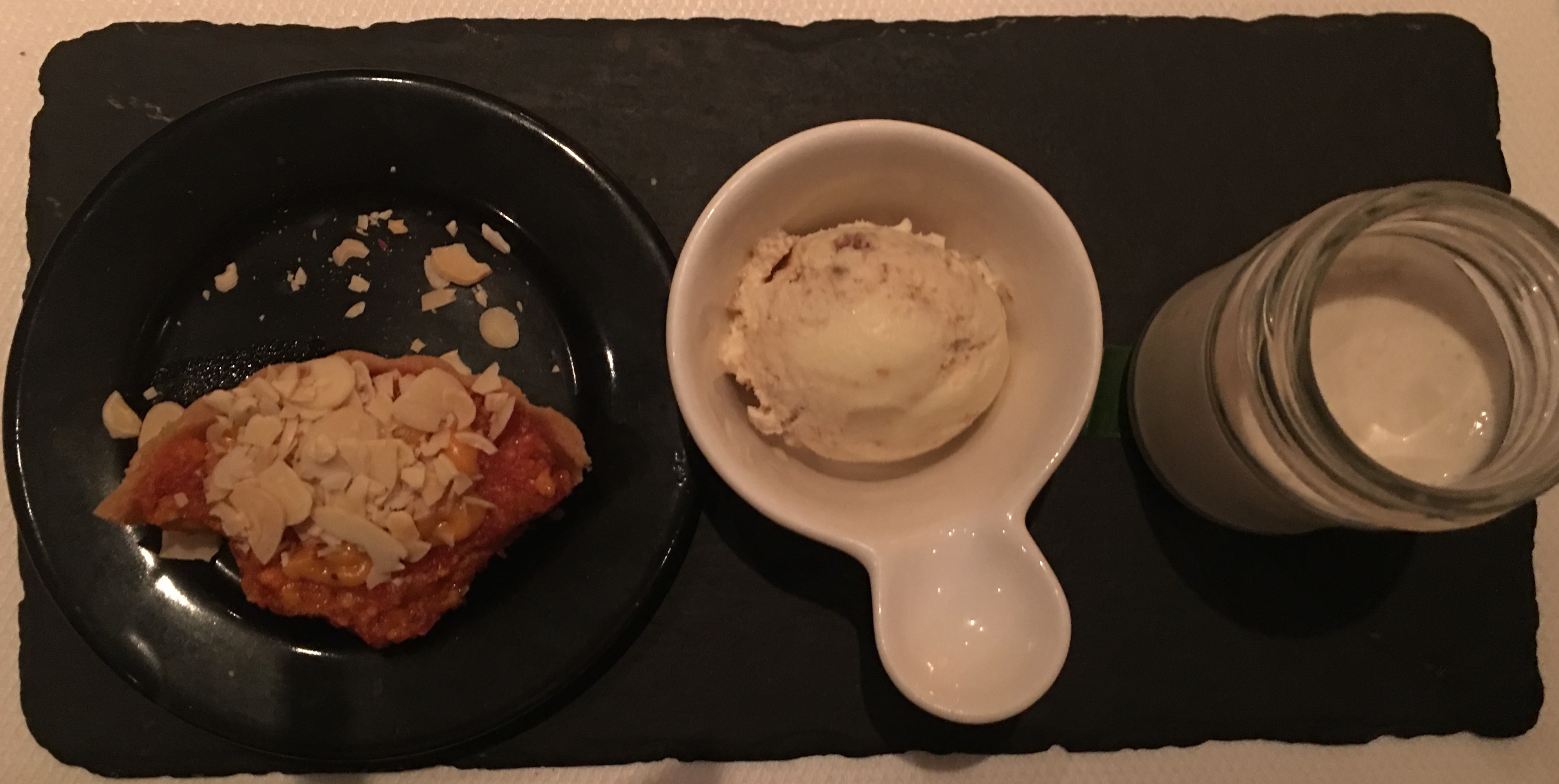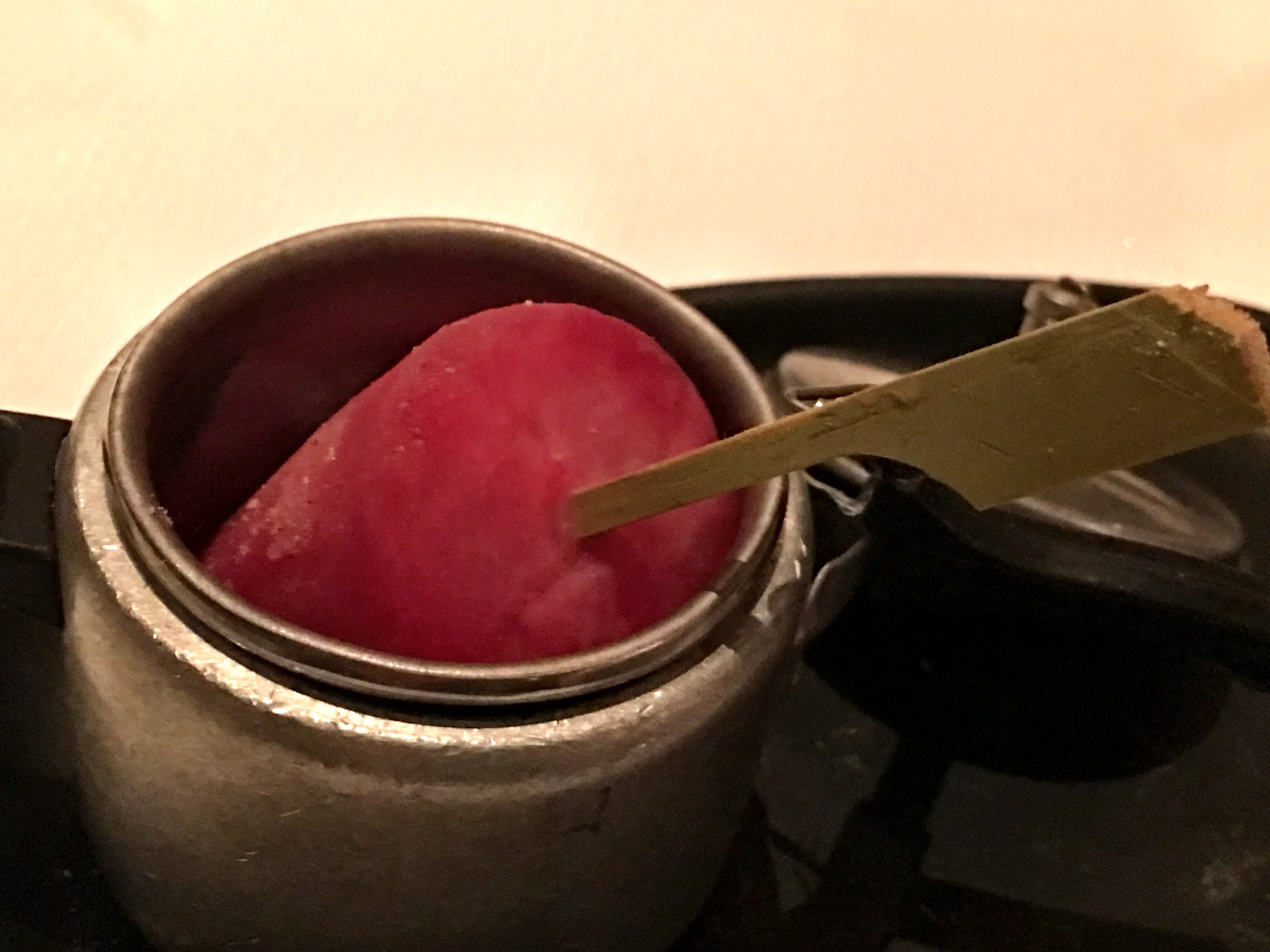 Dessert. Sigh. Black carrot halwa, vanilla ice cream, custard apple cream, followed by some mouth tingling digestives and a small box of sweets to take home.