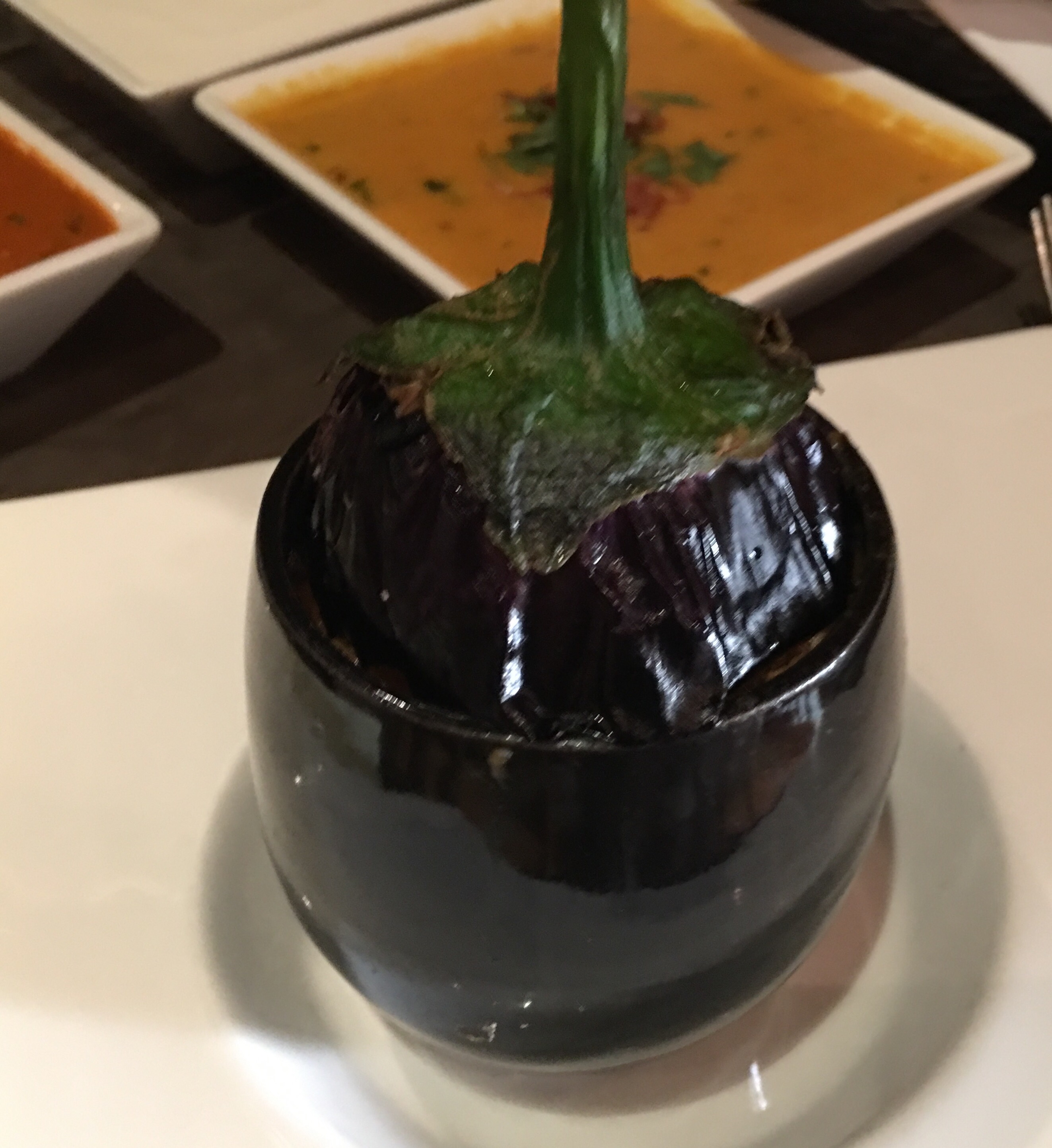 It was fun eating my favorite Indian restaurant dish, baingan bharta, in an actual Indian restaurant. It was served in a cutesy eggplant pot with a real eggplant top perched on it and was really excellent.