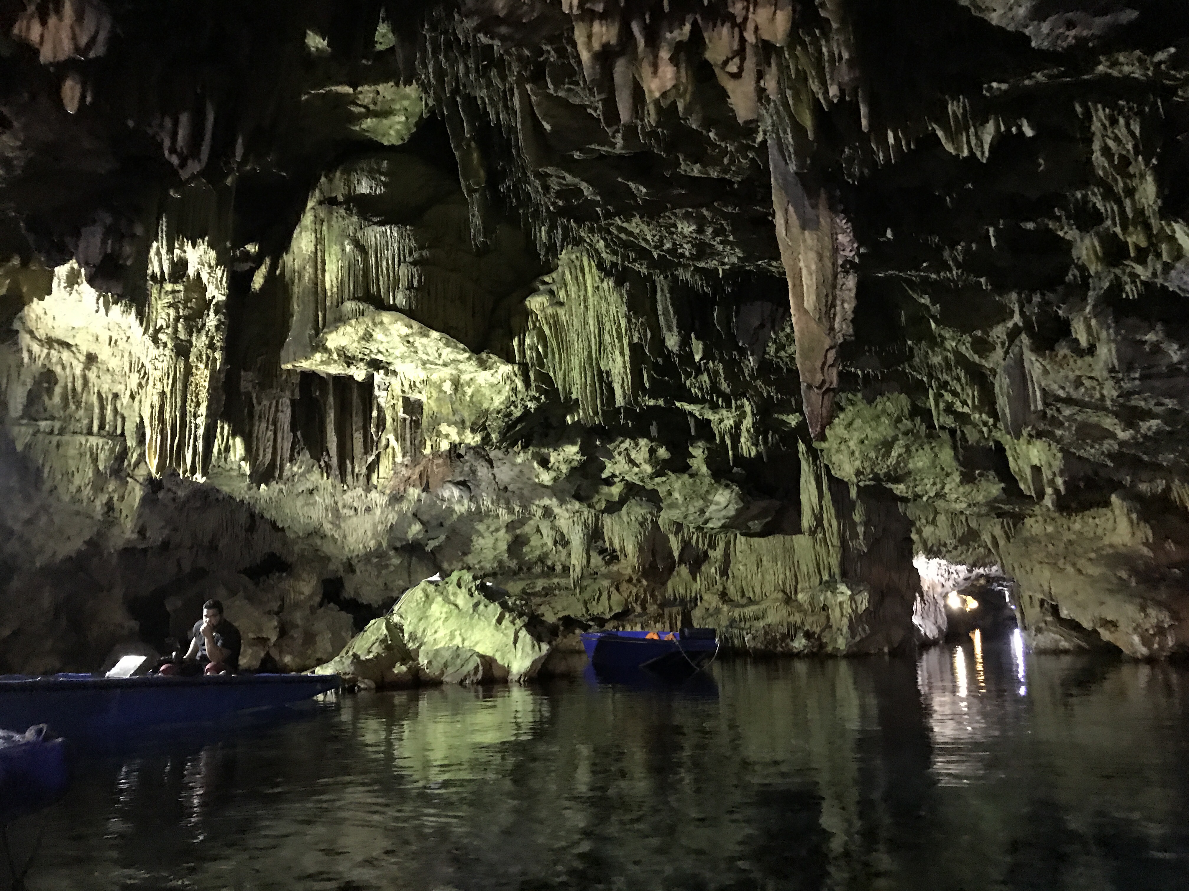 Yes, I, the essential claustrophobe, voluntarily descended slippery wet steps and got into a boat that silently slid through crystal waters in underground caverns.